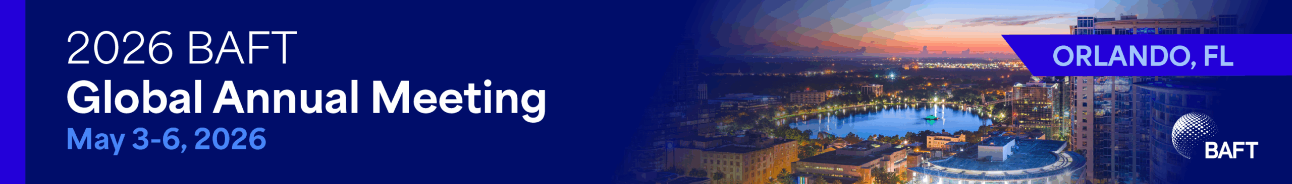 We are excited to open our Call for Speakers for the 2026 BAFT Global Annual Meeting taking place on May 3 – 6, 2026 in Orlando, FL. We are seeking thought-provoking, engaging speakers and subject matter experts. If this sounds like you, we encourage you to submit an application no later than Monday, December 8, 2025.