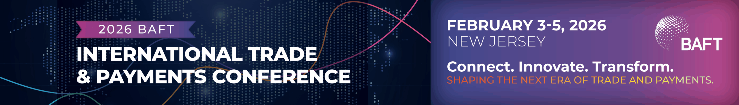 BAFT is delighted to host the 3rd annual BAFT International Trade and Payments Conference, February 3 – 5, 2026 in Jersey City. With the increasing interplay between trade and payments, we are uniting thought leaders, trade professionals, and payments experts for this exceptional gathering. This conference is a combination of our Annual Conference on International Trade and our Global Payments Conference, attracting over 200 trade and payments professionals from across the world.